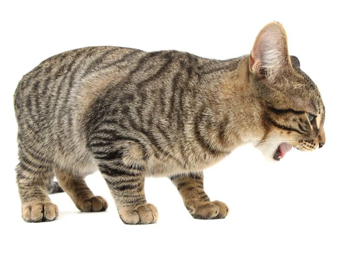 Bu durum, kedinin şiddetli öğürmesine rağmen bir şey çıkaramaması ile kendini gösterir.