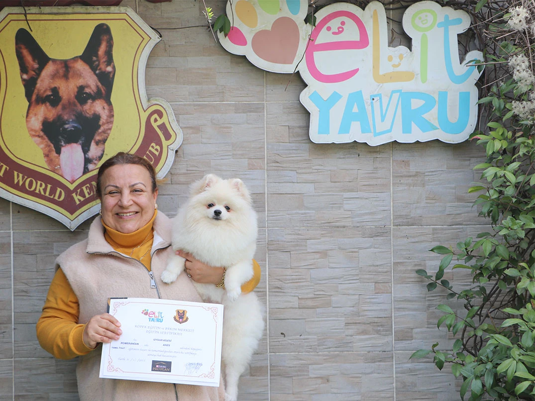 Temel itaat eğitimini başarıyla tamamlayan Pomeranian yavrumuz Ares, artık ailesiyle birlikte daha dengeli, uyumlu ve mutlu bir yaşam sürmeye hazır. Elit Yavru çiftliği olarak, her yavrumuzun karakterine özel planlanan eğitim programlarımızla onların hem bireysel gelişimlerini hem de aileleriyle kurdukları bağı en sağlıklı şekilde desteklemeye devam ediyoruz.